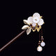 Un Kanzashi Japonais Blanc et Or à Fleurs et à Perles.