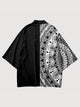 Un motif kitsune sur un merveilleux haori japonais, la promesse est incroyable ! Avez-vous déjà entendu parler du kitsune ? Il désigne le renard ainsi qu'un personnage du folklore japonais, il est très apprécié au pays du Soleil Levant et on le retrouve souvent sous forme de masque, les japonais adorent le porter lors de festivals, notamment pour compléter leur cosplay. Au niveau des couleurs présentent sur ce kimono moderne, nous retrouvons le blanc qui est la couleur principale ainsi que la présence de noir qui sert à contrebalancer le style de ce vêtement d'exception. À l'avant de magnifiques kanji japonais sont présents, pour un look intemporel en parfait accord avec la mode urbaine japonaise actuelle.